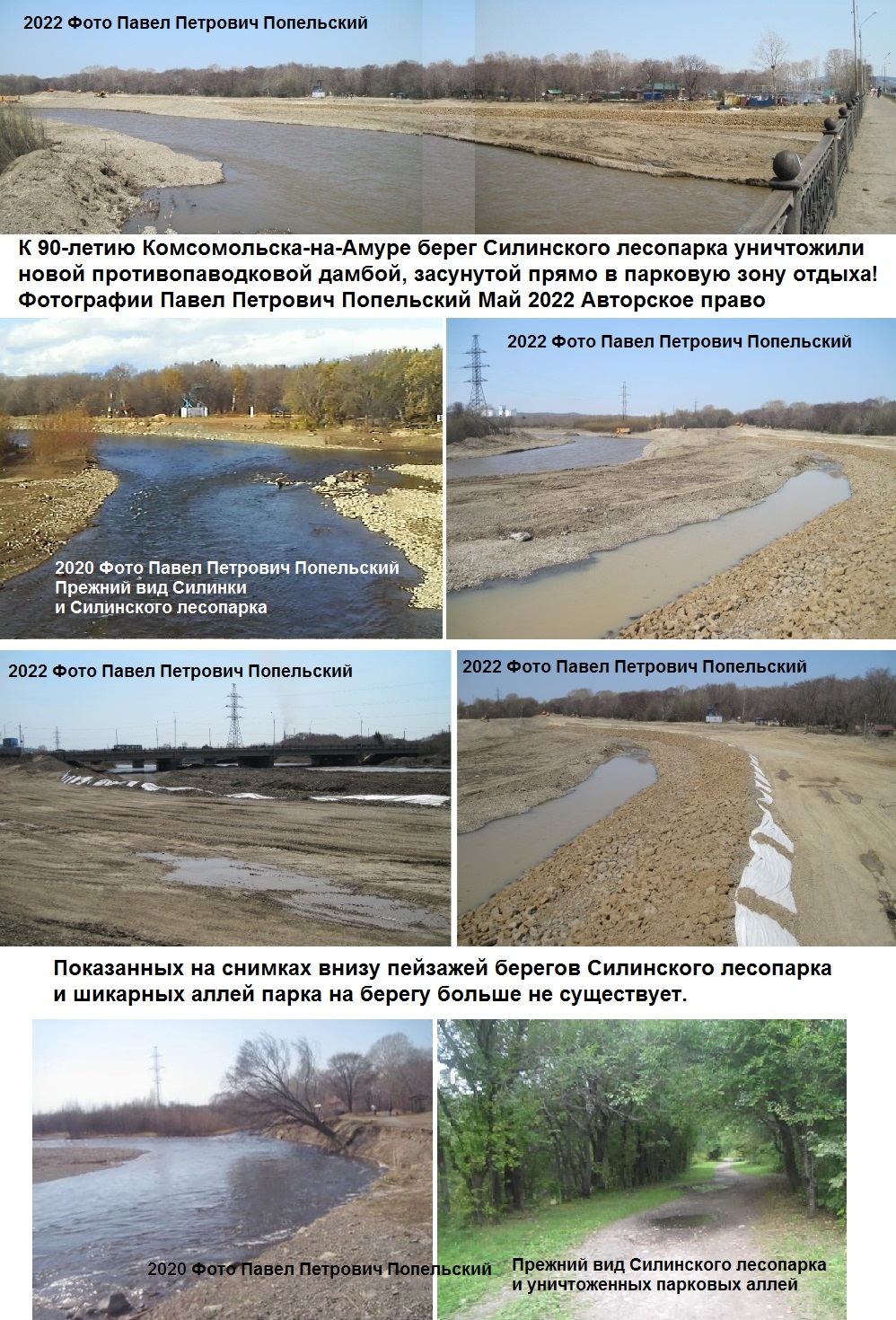 Берег знаменитого Силинского лесопарка у автомобильного моста на Комсомольском шоссе считался до 2022 лучшим местом отдыха внутри города: широкая горная река, парковые пейзажи вдоль берега, каменистые пляжи, лесные причудливые аллеи, традиционно привлекающие сотни комсомольчан.
