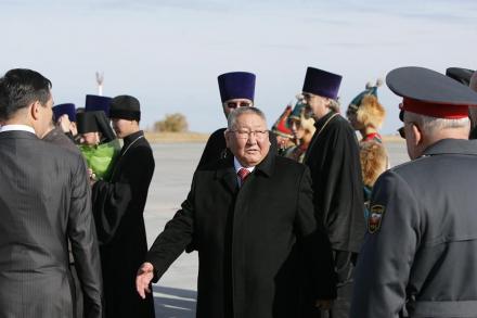 В аэропорту предстоятеля РПЦ встречали президент Егор Борисов, премьер Айсен Николаев, епископ Якутский и Ленский Илия, духовенство Якутской епархии.