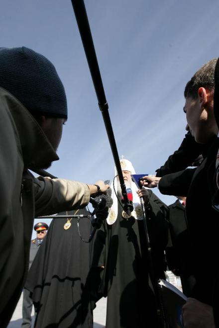 В честь прилета патриаршего борта на взлетной полосе расстелили ковровую дорожку. Только закончили, как появился заместитель руководителя пресс-службы Патриарха Московского и всея Руси отец Александр Волков. Ему немедленно что-то не понравилось, рабочие тут же принесли другую дорожку, расстелили, затем снова свернули, перенесли на другое место, потом опять свернули, и так несколько раз.