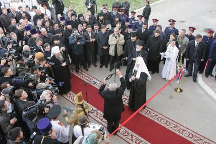 После перерезания ленточки его святейшество в домовой церкви передал духовному учебному заведению Почаевскую икону Божьей матери.
