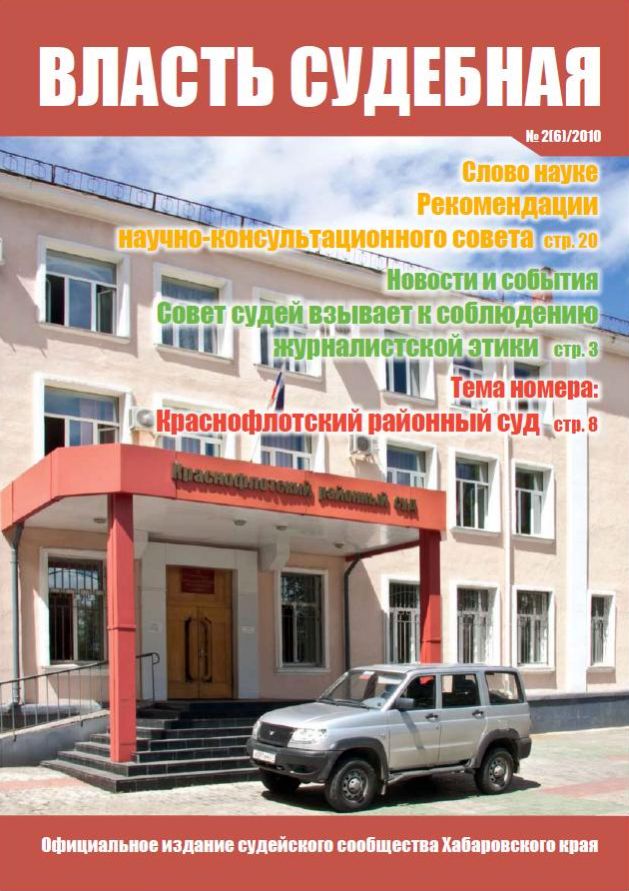 Представляем второй в этом году номер журнала «Власть судебная». Значительная часть в нём посвящена взаимоотношениям судебной власти со средствами массовой информации, а в частности конфликту, который разгорелся летом этого года между судейским сообществом Хабаровского края и журналистами одной из городских газет.