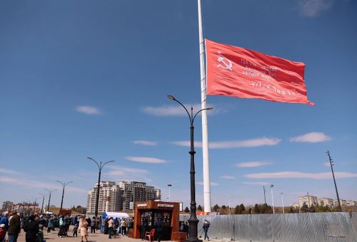 Копия Знамени Победы будет развеваться на флагштоке до окончания праздничных мероприятий, посвященных 79 годовщине со Дня Победы в Великой Отечественной войне.