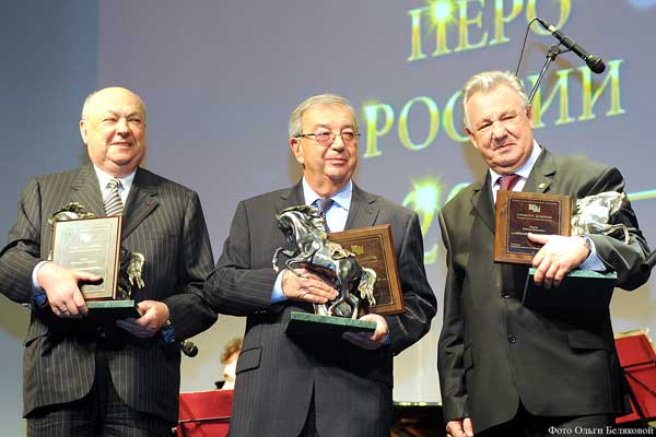 | Обладатели «Грамоты доверия» Союза журналистов России, первый заместитель мэра в правительстве Москвы Владимир Ресин, президент ТПП РФ Евгений Примаков, полномочный представитель президента РФ в Дальневосточном федеральном округе Виктор Ишаев |