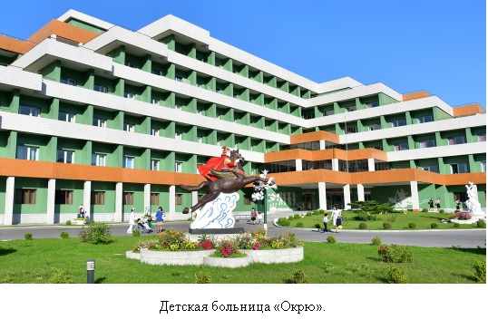 В Корее построена и современная детская больница с новейшим медицинским оборудованием. В Детской больнице «Окрю», находящейся в столице КНДР – Пхеньяне, имеются не только операционная, палаты стационарного лечения и лечебные кабинеты, но и комнаты для учебных занятий и игр. В этой больнице дети могут пользоваться медобслуживанием и получать школьное обучение.