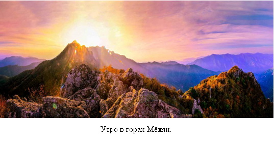 Горы Мёхян в Корее – это знаменитые горы, которые с древних времен отличаются причудливым и живописным ландшафтом, имеют густой лес из деревьев разных пород. Они охватывают широкие районы нескольких уездов, включая город Хичхон и уезд Хянсан.