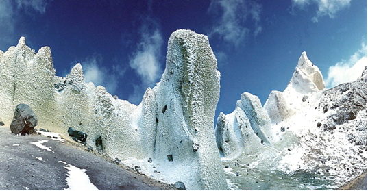 Священная гора Пэкту в КНДР, сформированная в результате неоднократного вулканического извержения и эволюционного процесса, открывает необычную природную обстановку. Из-за характерных черт высокогорной местности и изменчивого климата скалы горы Пэкту приобрели внешнее разнообразие.