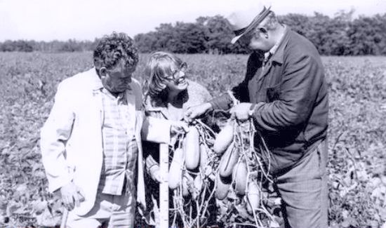 | Совхоз Святогорский. Слева Г.Т. Казьмин, директор ДальНИИСХа, справа – В.И. Нагаевский, бригадир совхоза, в центре – Ольга Мигина |