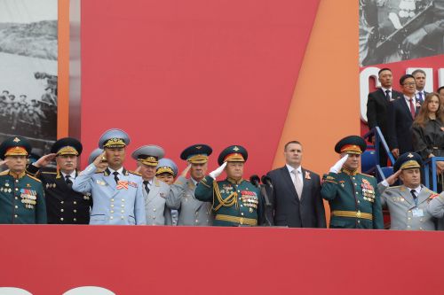 Командовал парадом исполняющий обязанности начальника штаба Восточного военного округа генерал-майор Дмитрий Горбатенко, принимал военный парад, кавалер трех орденов мужества исполняющий обязанности командующего войсками ВВО генерал-лейтенант Михаил Носулев.