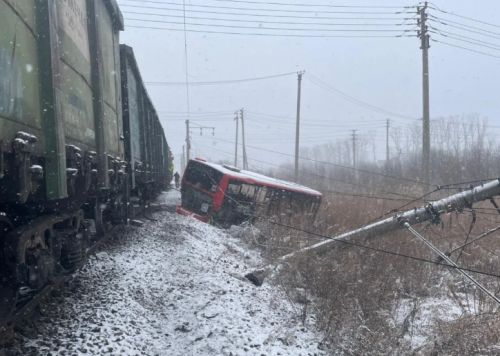 В результате ДТП схода подвижного состава нет. По предварительной информации, пострадали четыре человека, находившихся в автобусе. Локомотивная бригада за медицинской помощью не обращалась.
