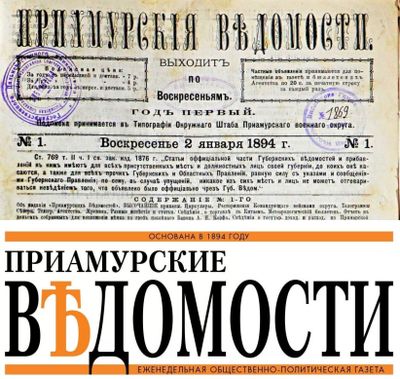 «Приамурские ведомости» - газета - выходит в Хабаровске со 2 [14] января 1894 года, первоначально выпускалась по государственной программе губернских ведомостей. Первая официальная газета Приамурского генерал-губернаторства, основатель - генерал-губернатор Приамурского края С.М. Духовский.