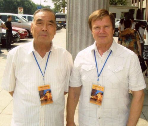 | Переводчик и писатель Геннадий Константинов (справа) с Айсингёро Чжао Цзи, прямым 13-м потомком от 6-го внука Нурхаци, на конференции в Тяньцзине. |