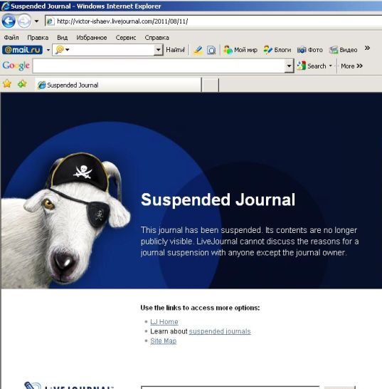 Вот что теперь написано по адресу : «Этот журнал был заморожен, все посты в нем недоступны для чтения. По соображениям конфиденциальности мы не можем обсуждать причины, по которым аккаунт был заморожен, с кем бы то ни было, кроме его владельца».