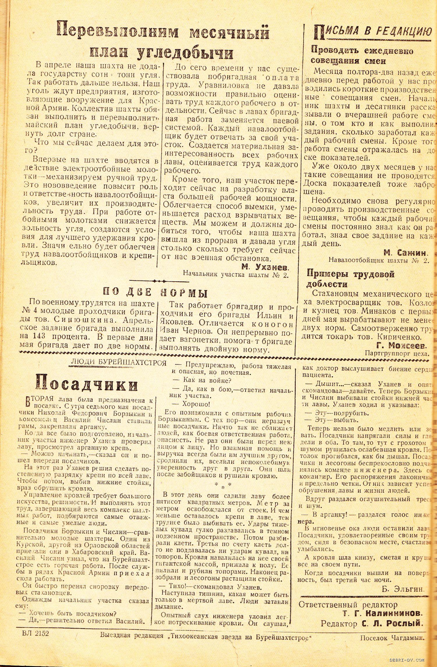 «Тихоокеанская звезда» на Бурейшахтстрое, №3, 09.05.1942 г./ Нажмите, чтобы УВЕЛИЧИТЬ стр.2 (нажмите, чтобы увеличить)
