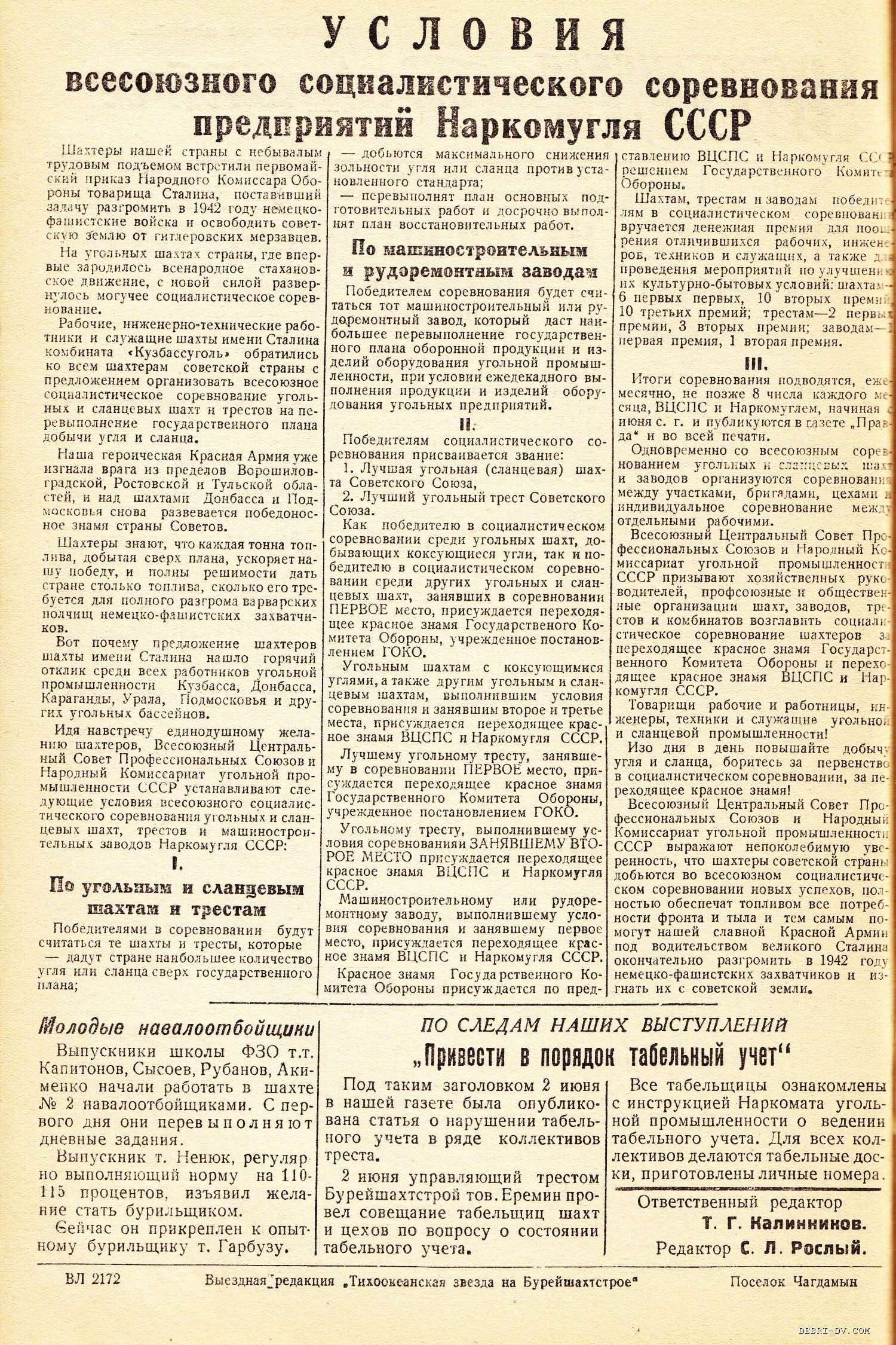 | «Тихоокеанская звезда» на Бурейшахтстрое, №23, 05.06.1942 г./ Нажмите, чтобы УВЕЛИЧИТЬ стр.1 |