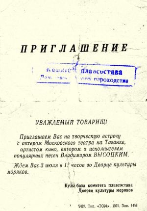 | Пригласительный билет на концерт Высоцкого |