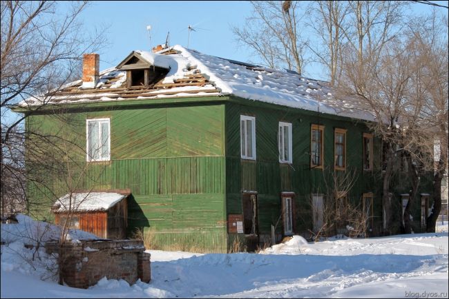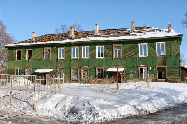 | Крыши домов в поселке разобрали, чтобы весной от снега они все развалились и жители убежали сами |