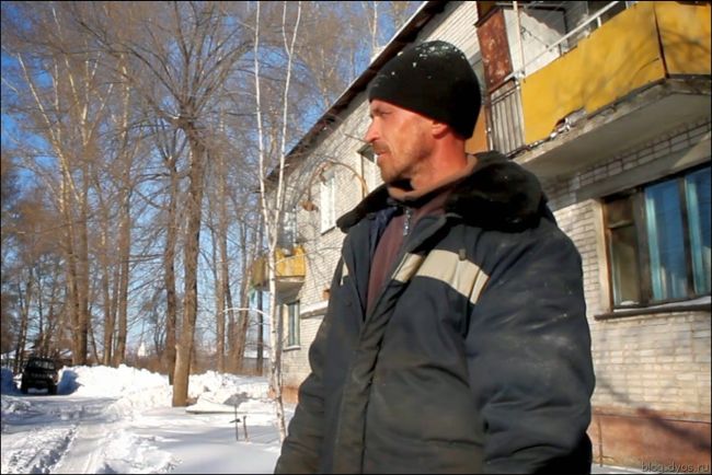 В 2014-м он получил жилье в трёхэтажном доме в Северном округе, в Хабаровске, на улице Александровской. Со слов хозяина нового жилья, его квартира оказалось взломанной: «Вот моя квартира, я там ни разу не был, новостройка. Дверь, главное, три язычка торчат, нижний не смогли взломать. В квартире ремонта нету, где грибок, где обои вот так вздутые, где банки валяются, помойка в хате. Я к прорабше. Отправляют в УКС, застройщик наш хабаровский».