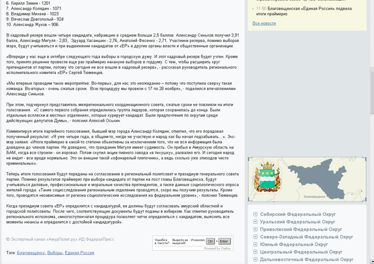 Теперь итоги голосования будут переданы на согласование в региональный политсовет и президиум генерального совета партии. Помимо результатов праймериз при выборе кандидата от партии на пост главы Благовещенска, будут учитываться деловые, профессиональные и моральные качества претендентов, а также данные социологического опроса жителей города. «Такие социсследования региональным отделение проводятся, скоро мы получим результаты. Кроме того, проводятся независимые от региона социологические исследования на федеральном уровне», - пояснил Тюменцев.
