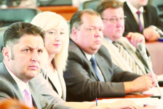 | Команда губернатора: начальник управления здравоохранения правительства ЕАО Алексей Синельников, заместители председателя правительства области Елена Лагошина и Владимир Приходько, экс-вице-губернатор Олег Леховицер. |