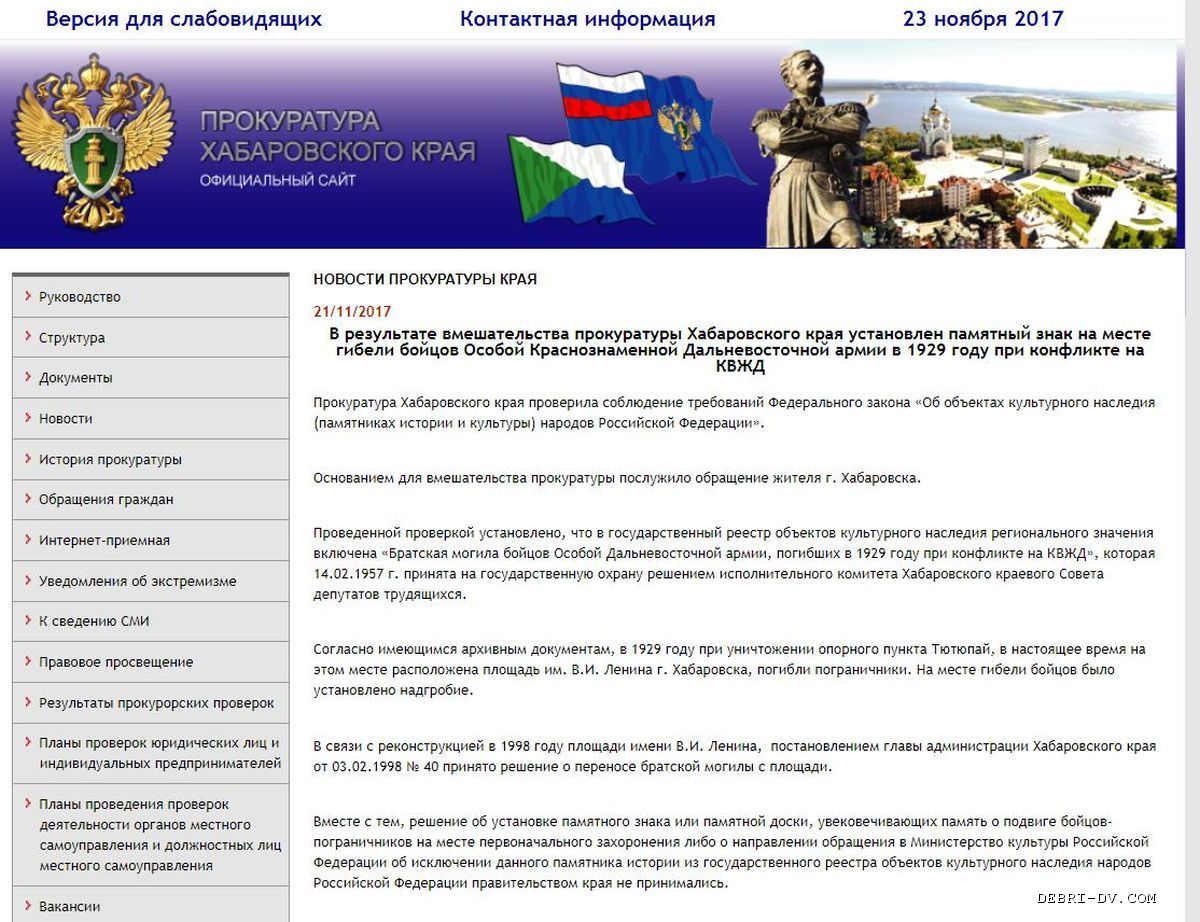 Новость прокуратуры Хабаровского края от 21.11.17 (нажмите, чтобы увеличить)