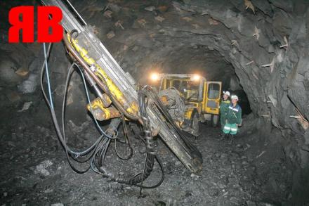Показывает: в темном забое трудится одна-единственная машина — буровая установка под названием «Бумер». «Бумер» выглядит как мини-трактор со стрелой-бурой и сверлит стенки, будто зуб. Так, что крошка летит в разные стороны, и шахтерам приходится надевать респираторы.