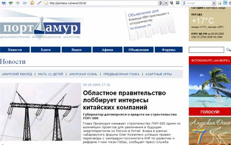 Олег Кожемяко отметил, что областные власти предпринимают реальные шаги в лоббировании интересов китайских компаний на Дальнем Востоке. По поручению президента были снижены коэффициенты резервирования мощностей электроэнергии для КНР. Кроме того, Дмитрий Медведев поручил изменить существующие правила оптового энергорынка, позволяющие инвесторам вкладывать средства в строительство на территории России новой дешевой электрогенерации и закупать электроэнергию по фиксированной цене, исходя из инвестиционных расходов.