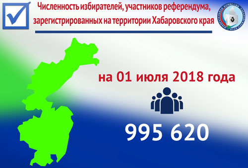 ![]() | Сведения о численности избирателей, зарегистрированных на территории Хабаровского края по состоянию на 01.07.2018 года |