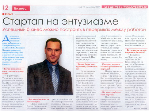 — Безусловно. Кое-что уже опробовали. В Комсомольске-на-Амуре и Иркутске у нас появились партнеры, которые занялись созданием городских порталов на базе нашей платформы. Но кризис и ряд других причин привели к заморозке этих направлений. Несмотря на это, присутствует большой соблазн сделать MoiGorod.Ru абсолютно автономным и все силы бросить на создание дочерних проектов в крупных городах.
