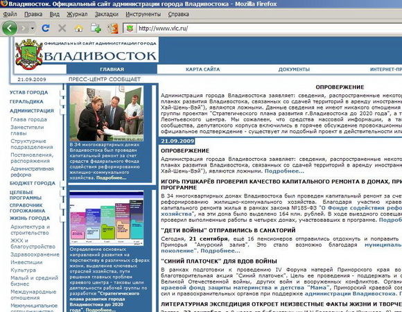 Администрация города Владивостока заявляет: сведения, распространенные некоторыми средствами массовой информации о планах развития Владивостока, связанных со сдачей территорий в аренду иностранным государствам (так называемый «проект Хай-Шень-Вэй»), являются ложными.