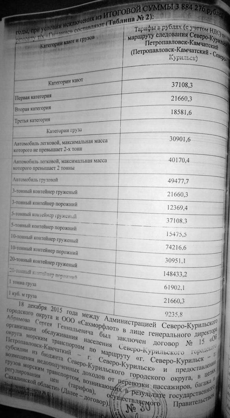Более того, Администрация Северо-Курильского ГО отмечает, что проверка каких-либо финансовых документов ООО «Сахморфлот» связанных с тарифообразованием в части морских перевозок, остается вне компетенции администрации.