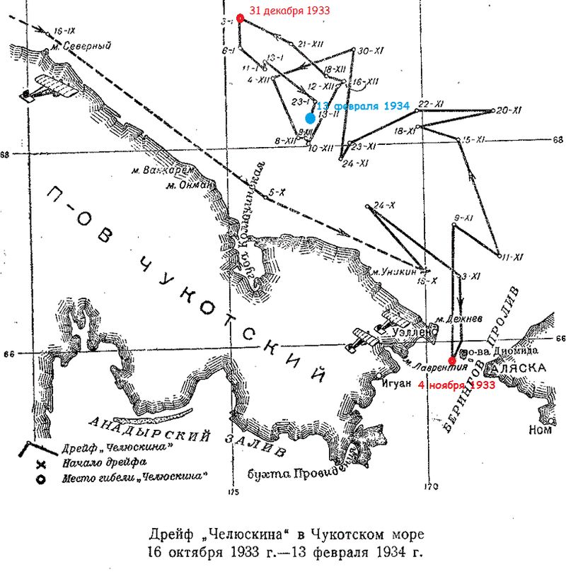 Первым красным днем на корабле было 1 сентября - Международный юношеский день (МЮД) - день интернациональной солидарности и трудовых успехов молодежи в социалистическом строительстве, тогда пароход «Челюскин» проходил в Карском море по «легкому» льду, потом, 7 ноября - день Октябрьской революции (6 ноября в Москву отправили торжественную телеграмму!) - когда пароход вместе со льдами находился в Беринговом проливе, у острова Ратманова (Большой Диомид), и, казалось, вот-вот будет «чистая вода» и Северный морской путь пройден, и 31 декабря 1933 года - когда еще была надежда - после зимовки - освободиться ото льда.