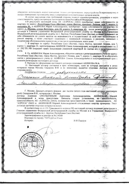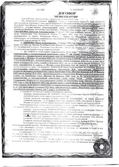 По их многочисленным просьбам VipYakutia представляет фоторепортаж нового «Якутского дома» в г.Москве по адресу: улица Ватутина, дом 18, корпус 2, в котором согласно договору мены (прилагается) между представителем АК «АЛРОСА» А.А. Смолыгиным и дочерью Акимова проживает семья вице-президента Якутии, и, вероятно, некоторые члены Правительства РС(Я).
