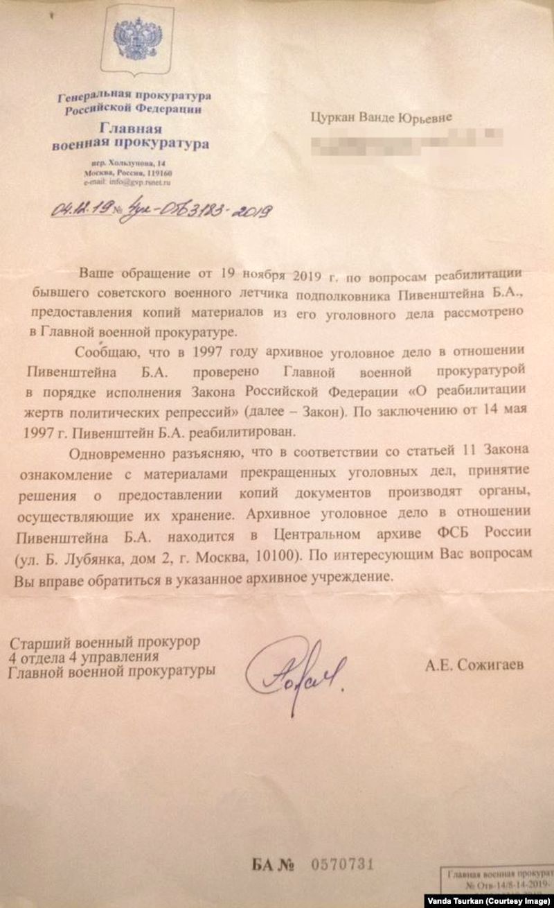 Гвардии подполковник, всемирно известный летчик, принимавший участие в спасении экипажа и пассажиров парохода «Челюскин» Борис Пивенштейн, попав в 1943 году в плен, был повешен гитлеровцами в концлагере Штуттгоф 16 мая 1944 г., а затем, через восемь лет после гибели, еще и заочно «расстрелян» по приговору Военного трибунала в 1952 г., как предатель, не вернувшийся после плена.