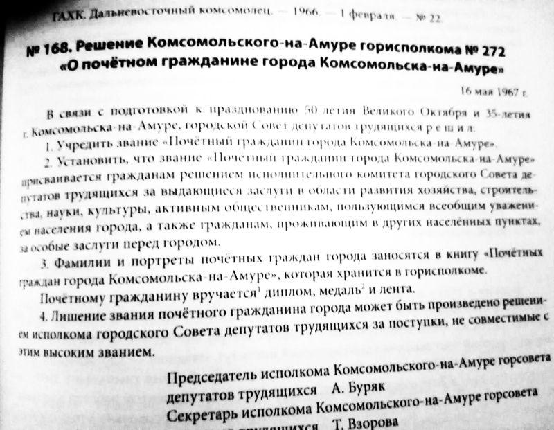 В отличие от господина Гинзбурга, я предлагал для снижения бюджетных расходов применить не ценз оседлости, а имущественный ценз. В 1967 году в связи с подготовкой к празднованию 35-летия города Юности решением горисполкома было учреждено звание почетный гражданин. При советской власти почетным гражданам не полагались никакие денежные выплаты. Почетному гражданину вручали диплом, медаль и ленту.