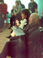 В отличие от наших студентов, японцы, к примеру, приводят на форум реальные проекты, вплоть до конструкции стула. В Хабаровск они даже привезли образец! Комфортный стул. Знаете, из чего он сделан? Из железобетона. И доказывали, что это мебель будущего, которая не имеет срока годности, не бьется, не царапается, не ломается. Стул этот не холодный – он со специальным покрытием.