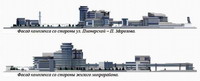 Эта группа объектов при помощи воздушных переходов через улицы Пионерская – П. Морозова свяжется с Ледовым дворцом (он уже строится). Между зданиями на уровне третьего этажа будут устроены переходы, опирающиеся на колонны. Крупные (на два этажа) стеклянные плоскости торгового корпуса и переходов за счет отражения визуально увеличат и выровняют, или «проутюжат», пространство прибрежной зоны.