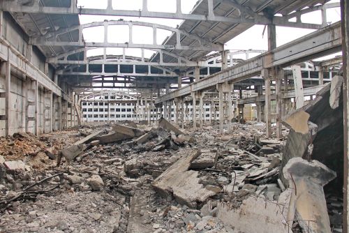 От тротуара зону упадка отделяет забор с металлической сеткой, но если пройти дальше, можно вплотную приблизиться к «нашим достопримечательностям» и попасть на запущенную территорию. Производственные цеха и складские помещения бывшей швейной фабрики, на которой в лучшие времена трудилось около трех тысяч человек, превратились в руины. Кучи битых кирпичей, обломки шифера, осколки стекла соседствуют с уцелевшими фрагментами зданий, внешнее состояние которых вызывает инстинктивное желание убраться прочь - обрушение с тяжкими последствиями может произойти в любой момент…