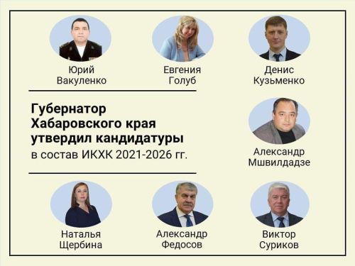 - Вакуленко Юрий Иванович, предложен Собранием депутатов Вяземского муниципального района Хабаровского края;
