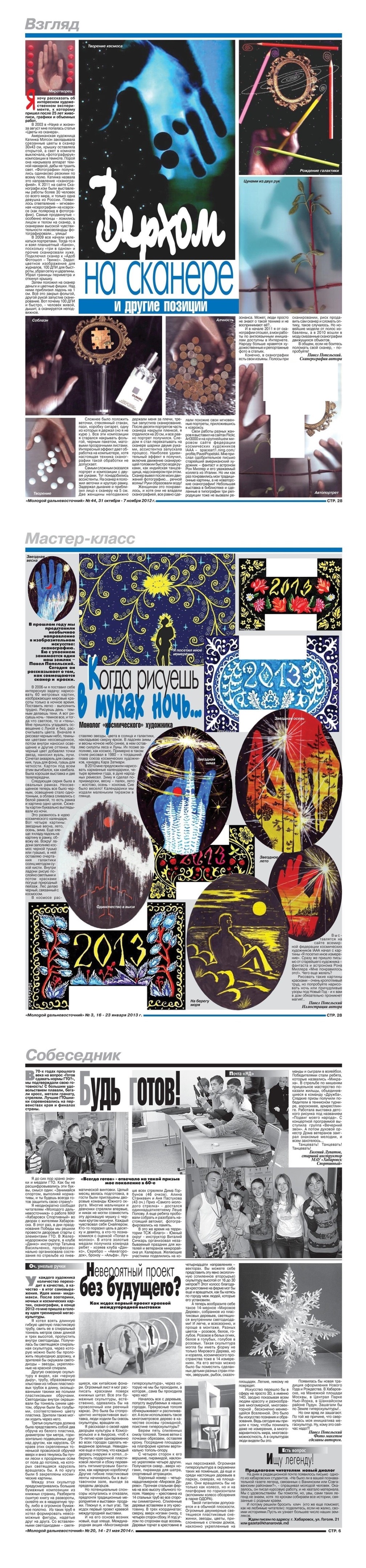 В связи с тем, что Молодой Дальневосточник уничтожил все мои публикации на его сайте с 2012 по 2015, и они по ссылкам здесь теперь не доступны, я размещаю на Дебрях оригинальные газетные страницы моих лучших публикаций в Молодом Дальневосточнике.