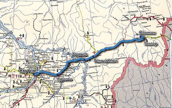 | Автодорога Якутск-Магадан, проходящая через Оймяконскую долину |