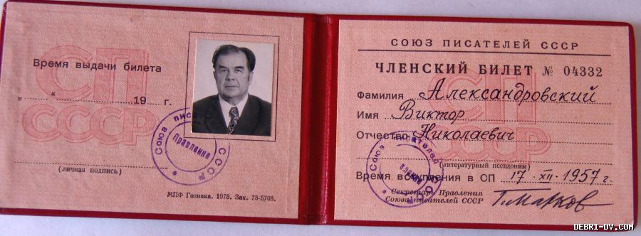 | Удостоверение В. Александровского/ Нажмите, чтобы УВЕЛИЧИТЬ |