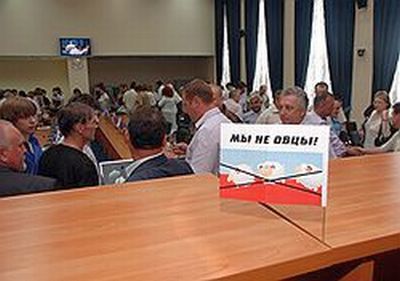 | Противники внесения изменний в устав города считают, что отсутствие прямых выборов мэра сделает благовещенцев «овцами»/ Фото: Павел Кошеленко/Коммерсантъ |