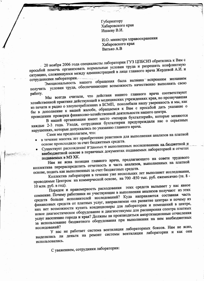 собкора по Приамурью "Парламентской газеты" А.А. Хорошилова (открытое письмо в прокуратуру ДФО)