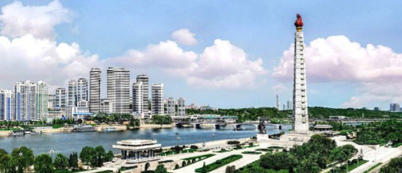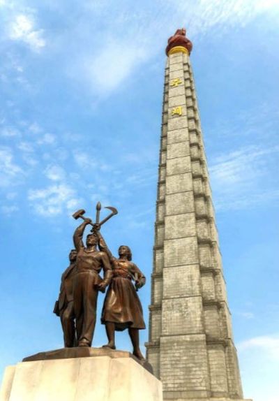 Монумент идей чучхе находится у берега реки Тэдон, в центре г. Пхеньяна. Он является самым высоким в мире каменным обелиском (высота – 170 м). Факел на обелиске символизирует идеи чучхе, освещающие путь к решению судьбы человека, их истинность и жизненную силу. Он, словно разгорающееся пламя, ярко освещает ночное небо Пхеньяна.