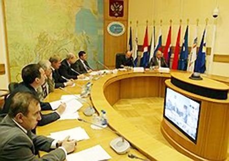 | Члены общественной палаты при полпреде искали партийное равновесие в телеэфире. Фото: Евгений Переверзев/Коммерсантъ |