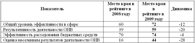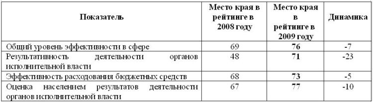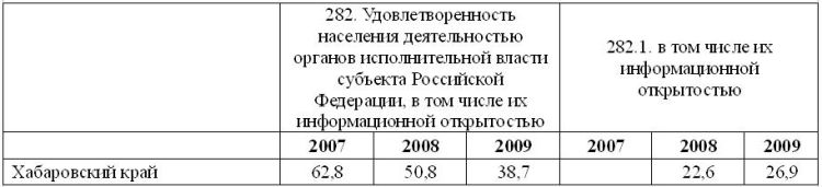 Ещё одним важным направлением административной реформы является повышение эффективности взаимодействия органов исполнительной власти и общества. Результативность этой работы отслеживается через показатели удовлетворённости населения работой властью. И это как же надо было организовывать  взаимодействие краевой власти с народом, чтобы в отсутствии каких бы то ни было глобальных потрясений в крае в 2008 и в 2009 году получить такие данные по показателям удовлетворённости?