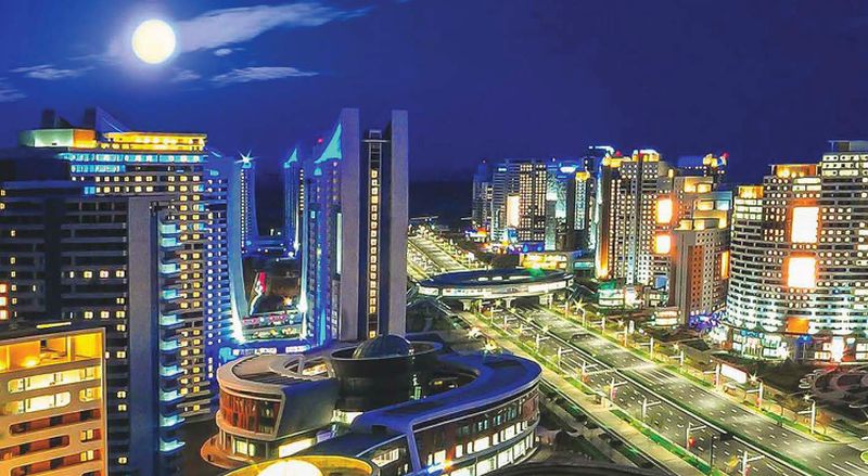 Полная луна заливает светом улицу. Яркие огни окон домов. Нежные гаммы эмоционального настроя. В апреле с. г. у восточного входа в Пхеньян, столицу КНДР, воздвигнут жилой комплекс с большой группой архитектурных строений в самобытном стиле, с жилыми домами на 10 тыс. квартир. Дома на этой современной улице бесплатно получили от государства рабочие, служащие и другие простые люди труда.