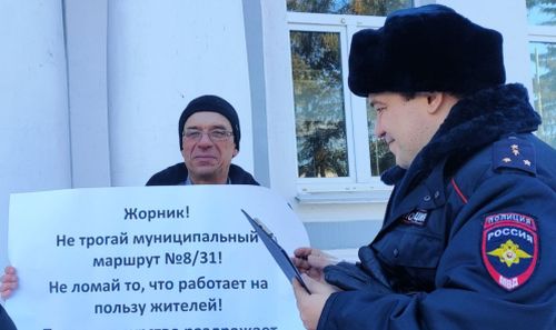 «Все дело в транспортной реформе – Олег Паньков считает, что внедряя ее, нынешний глава города усложняет жизнь комсомольчанам, пользующимися услугами автобусов. Бывший парламентарий вышел сегодня к администрации с плакатом: «Жорник, не трогай маршрут №8/31, не ломай то, что работает на пользу жителей!»