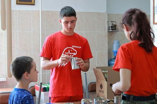 На летних каникулах работу не прекращают. Участвуют все без исключения. Каждый старается в меру своих сил. 1-4 классы готовят рисунки для бойцов, пишут «добрые письма» и вовлекаются в сбор гуманитарной помощи, ребята постарше изготавливают свечи и помогают плести сети.