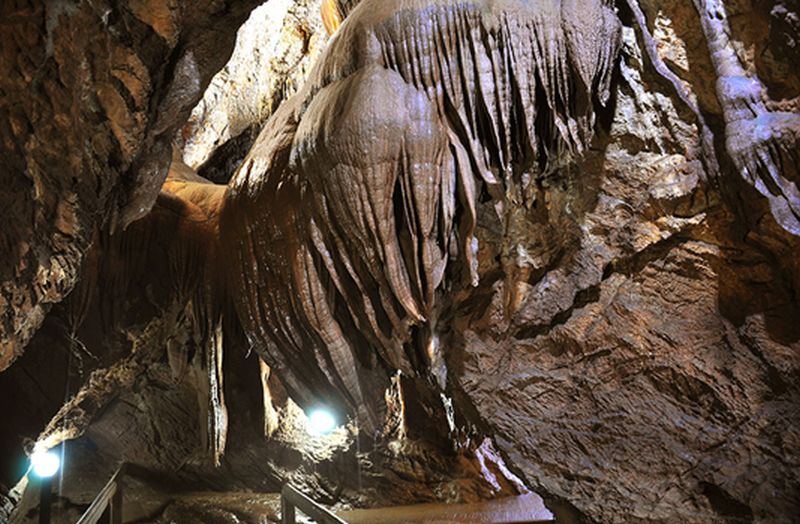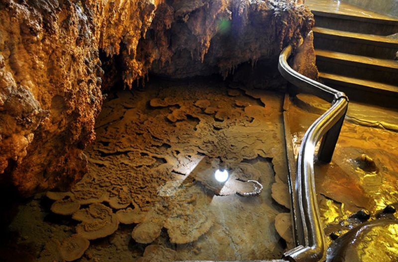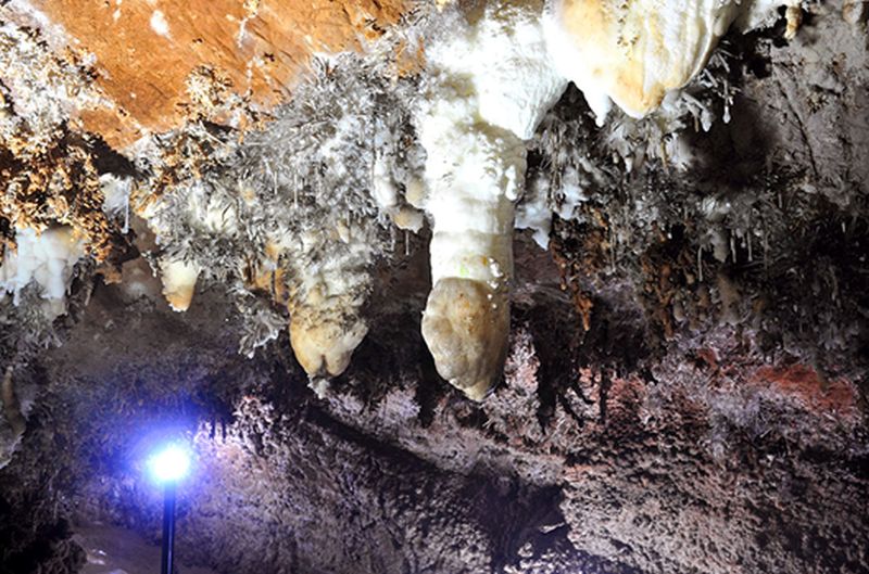 В этой естественной пещере каменные «цветки», сталагмиты и сталактиты, каменные столбы, образованные около млрд. лет назад в ходе долголетнего растворения и коррозии, создают волшебный мир всяких феноменов.